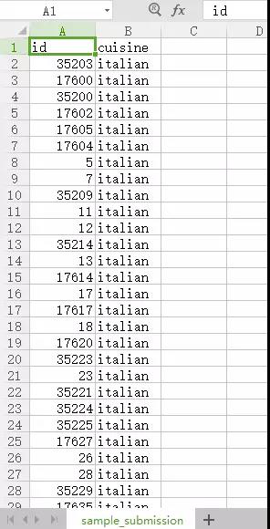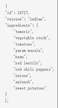 In the test file test.json, the format of the recipe is the same as train.json, only the dish type is deleted, because it is the target variable we want to predict.