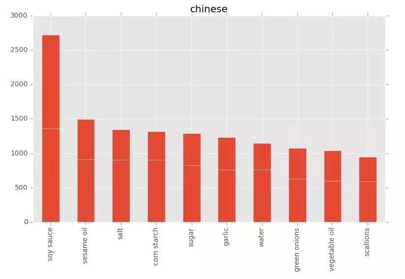 The results can then be visualized by matplotlib. Through data analysis, you can get a lot of interesting information. For example, the most used ingredients in Brazilian cuisine are onions, olive oil, and lemon. In China, lemons are obviously not frequently used in home cooking. The most used ingredients are sauce, sesame oil, corn starch and so on. Soy sauce can be reasonably predicted to have a large correlation to China’s number one material!